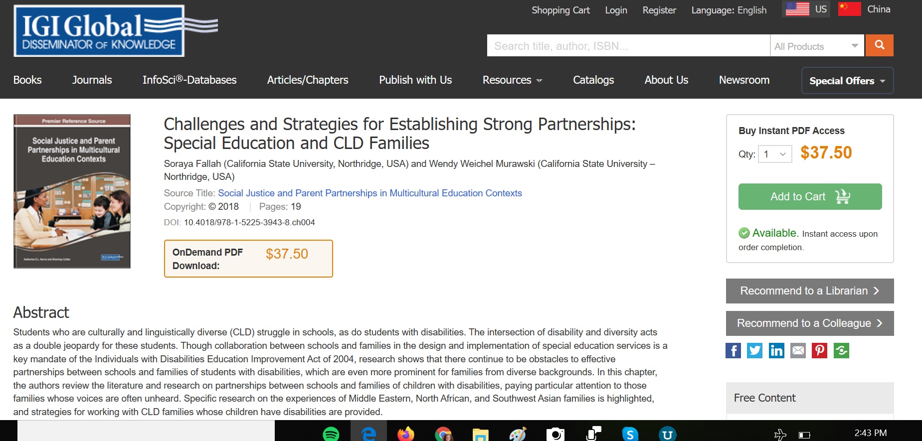 Our chapter: Special Education and CLD Families: Challenges and Strategies for Establishing Strong Partnerships